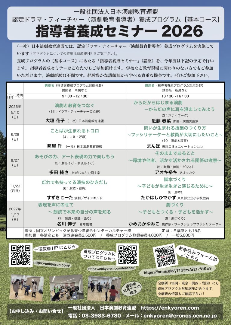 一般社団法人日本演劇教育連盟認定ドラマ・ティーチャー(演劇教育指導)養成プログラム