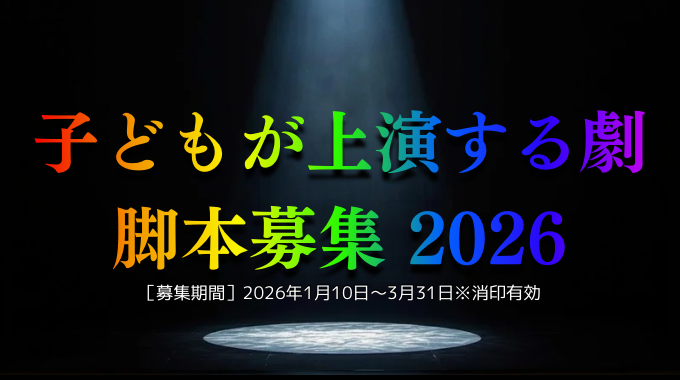 一般社団法人日本演劇教育連盟は、いわゆるドラマ教育とともに、劇を演じるための脚本も大切にしています。本年も晩成書房と連携して、「2026年子どもが上演する劇」の脚本を募集します。子どもたちが楽しく生き生きと劇活動に取り組める脚本、上演されながらも広く知られていない優れた脚本をより多くの現場・地域の子供たちに届けることを目的としています。学校の内外で子どもたちの表現活動が積極的に進められるような創作脚本が多数寄せられることを期待しています。小・中学生、高校生による作品も歓迎します。